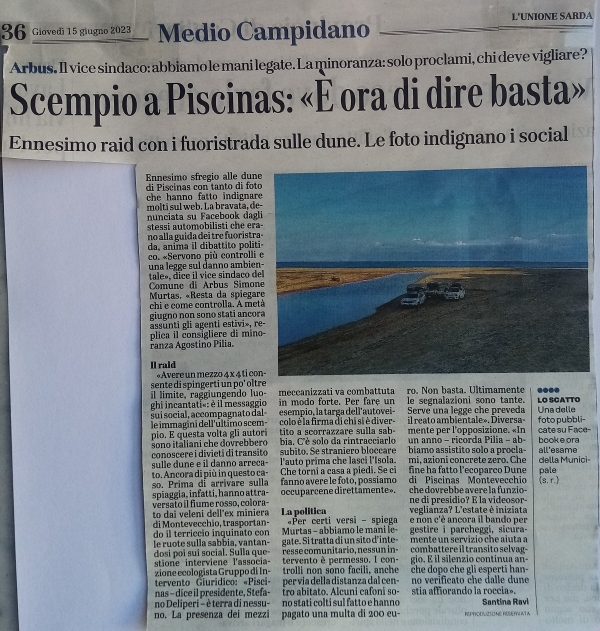 La Panda sulle dune: rischia mille euro di multa. Sanzione anche a camperisti francesi: https://www.sardiniapost.it/cronaca/la-panda-sulle-dune-rischia-mille-euro-di-multa-sanzione-anche-a-camperisti-francesi/