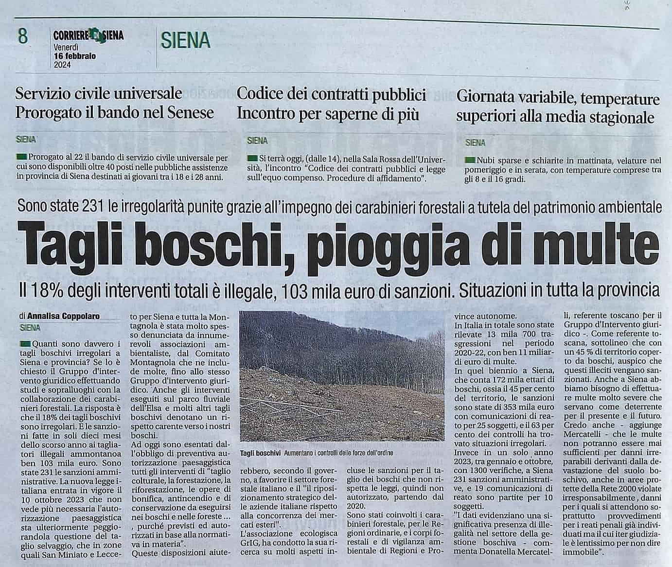 Il Corriere di Siena, 16 febbraio 2024