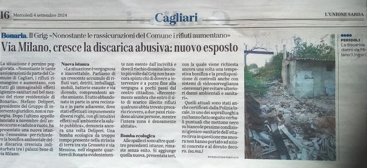 Il GrIG auspica finalmente il ripristino delle condizioni ambientali e sanitarie di un’area nel centro di Cagliari, unitamente al fondamentale svolgimento della vigilanza contro cafoni e inquinatori.