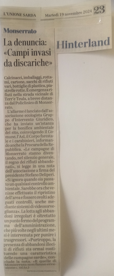 Monserrato, la denuncia del GrIG: “Le campagne stanno diventando il regno dei rifiuti abbandonati”: https://www.ajonoas.it/monserrato-la-denuncia-del-grig-le-campagne-stanno-diventando-il-regno-dei-rifiuti-abbandonati/