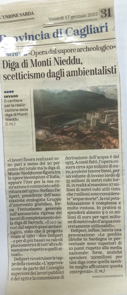 Il progetto della diga di Monte Nieddu – Is Canargius, fra i più osceni scempi ambientali e finanziari d’Italia: https://algherolive.it/2025/01/16/il-progetto-della-diga-di-monte-nieddu-is-canargius-fra-i-piu-osceni-scempi-ambientali-e-finanziari-ditalia/