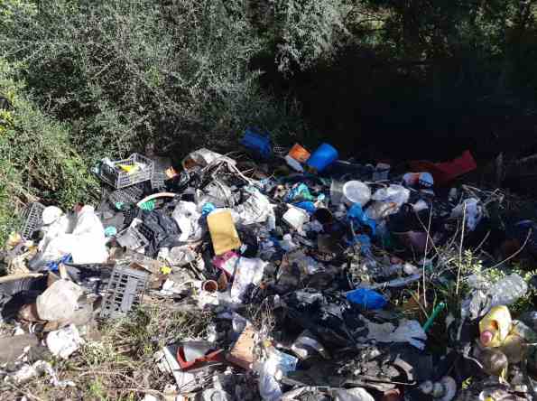 Vi scorre un piccolo corso d’acqua e possiamo immaginare l’effetto di una piena in occasione di piogge sostenute: i rifiuti finirebbero sparsi in un’area molto ampia con gli intuitivi effetti negativi ambientali e sanitari.