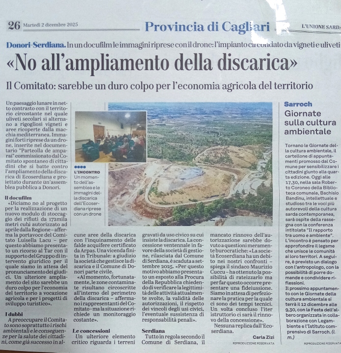 Serdiana e il Parteolla, un territorio al servizio di una discarica.