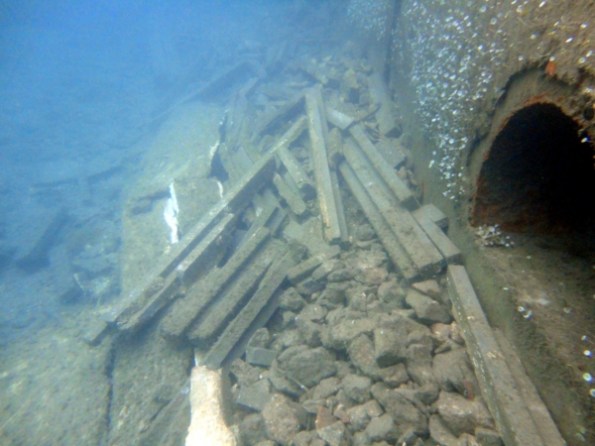 E infine l’oscena carcassa del bellissimo Mascalzone Latino abbadonata sul molo.