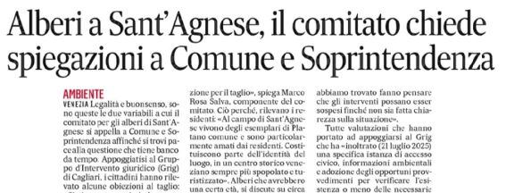 Nel caso dei Platani di Campo S. Agnese, però, non pare che vi sia alcun imminente pericolo da determinarne il taglio, visto che lo stato di salute degli alberi è stato verificato da personale specializzato nel marzo 2024 e non vi è stato alcun immediato abbattimento: sarebbe singolare un pericolo per l’incolumità pubblica a scoppio ritardato di sedici mesi.