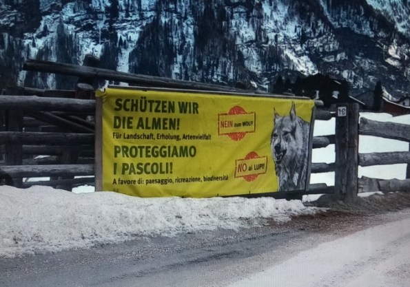 Tali messaggi devianti, veicolati da una cartellonistica tanto assurda quanto fomentatrice di odio, è davvero slegata dalla realtà di una specie di fondamentale importanza naturalistica – il Lupo (Canis lupus) – presente al massimo con un’ottantina di esemplari, secondo i dati della Provincia autonoma di Bolzano.