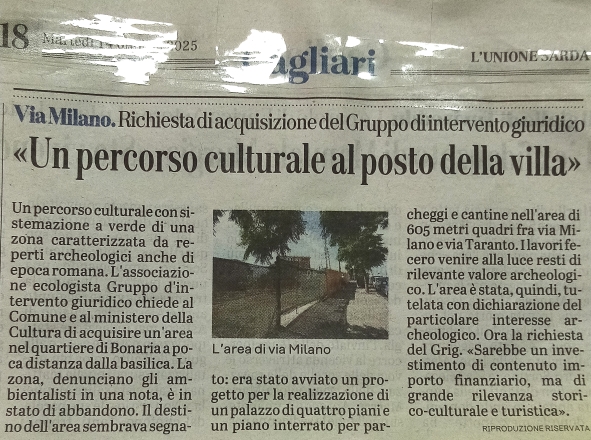 L’associazione ecologista Gruppo d’Intervento Giuridico (GrIG) ha, pertanto, inoltrato (13 ottobre 2025) una richiesta al Comune di Cagliari e al Ministero della Cultura perché l’area venga acquisita mediante esproprio o bonariamente al fine di realizzarvi un percorso culturale con sistemazione a verde, così da salvaguardare e valorizzare un’importante testimonianza della storia della Città.