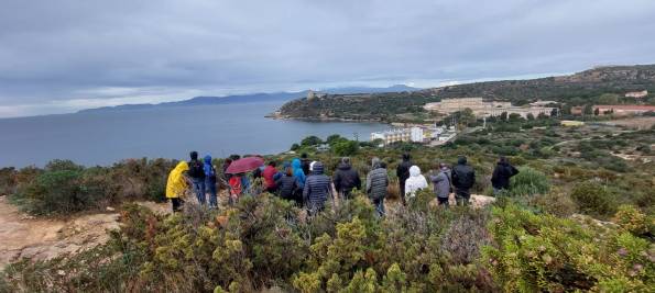 Nonostante qualche goccia di pioggia intermittente, non certo fuori luogo in Autunno, la ventina di escursionisti ha potuto ammirare le bellezze naturalistiche e storico-archeologiche, dall’epoca punica ai più recenti eventi bellici della II guerra mondiale, e, in particolare, la suggestiva prima fioritura dell’Iris planifolia, piuttosto in anticipo rispetto al solito.