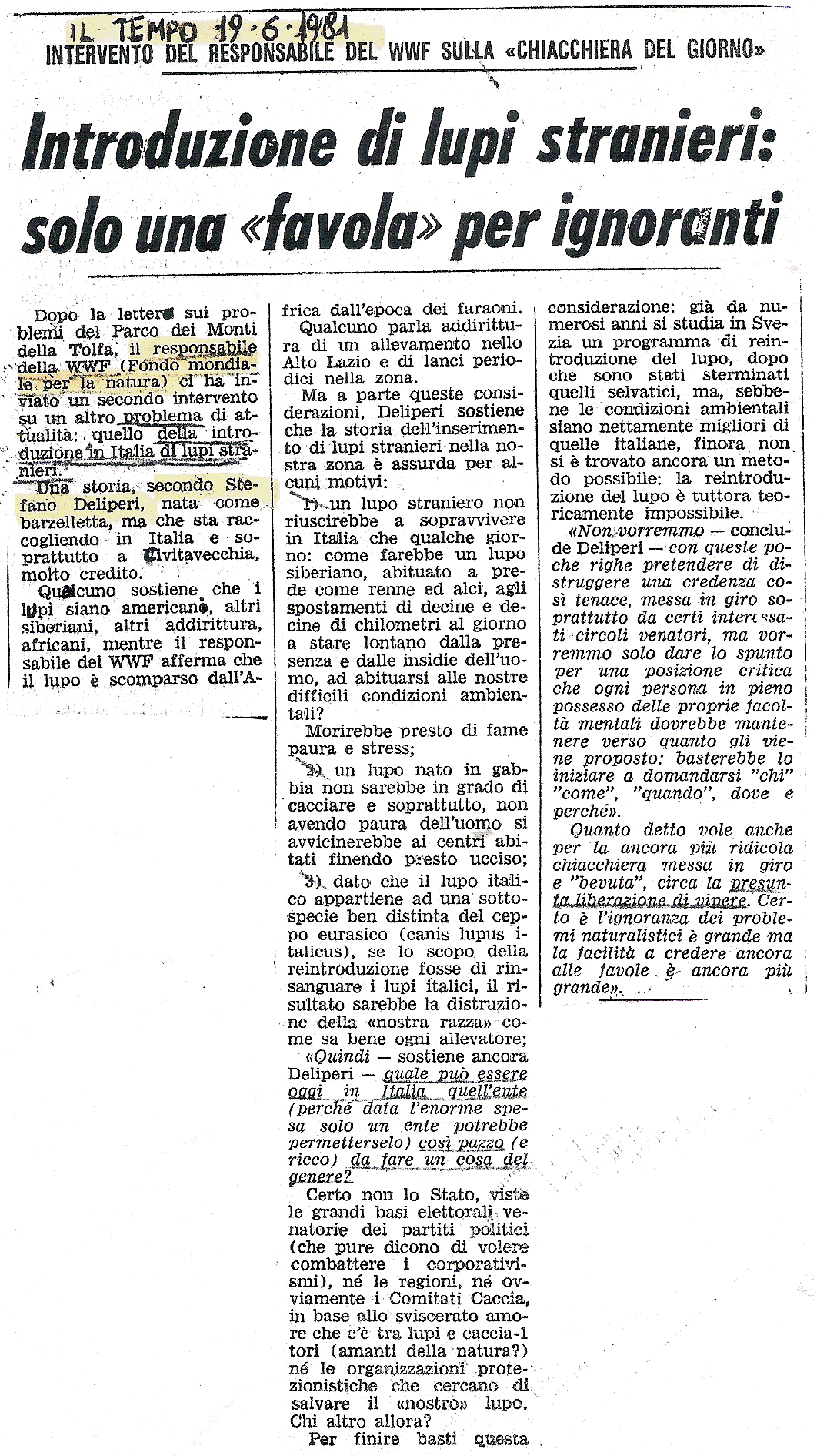 Chi scrive venne accusato di far parte, insieme ad altri ecologisti dell’alto Lazio, di un gruppo di terroristi ecologisti che liberavano Lupi con gli elicotteri, facendoli lanciare con il paracadute.