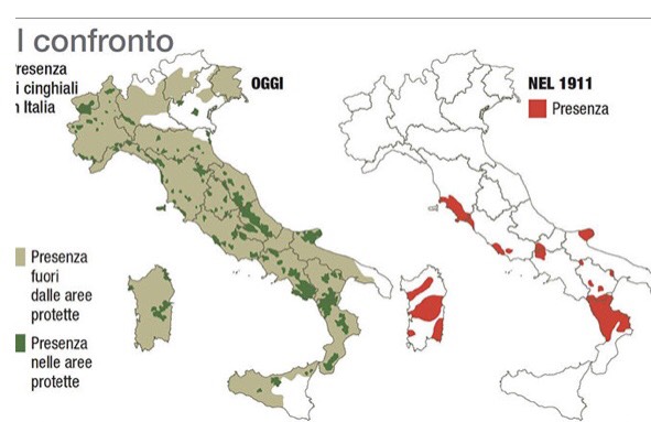 Così affermava l’I.N.F.S., oggi ISPRA: “importante si è rivelata, a partire dagli anni ’50, la massiccia introduzione di ‘cinghiali’, inizialmente catturati all’estero e successivamente provenienti dagli allevamenti che si erano andati progressivamente sviluppando in diverse regioni italiane. Questo, come già ricordato, ha creato problemi di incrocio tra sottospecie differenti e di ibridazione con le forme domestiche, che hanno portato all’attuale virtuale scomparsa dalla quasi totalità del territorio della forma autoctona peninsulare. Purtroppo questi elementi negativi della gestione della specie permangono tuttora”. Nell’area oggetto di esame specifico, “le province che hanno effettuato immissioni di cinghiali a scopo venatorio sono risultate 6 su 33, tutte caratterizzate da presenza di danni all’agricoltura (da 2.600 a 52.000 euro all’anno) ed assenza di attività di prevenzione e piani di controllo” (Min. Agricoltura – I.N.F.S., Linee guida per la gestione del Cinghiale, 2003, p. 11-12).