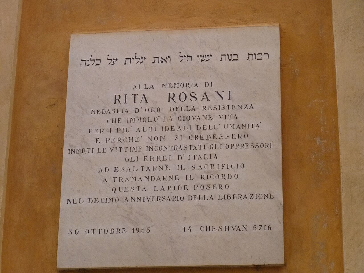 lapide in memoria di Rita Rosani nella sinagoga di Verona