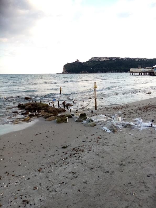A Cagliari puoi far così una splendida passeggiata fra natura e cultura, ma puoi anche vedere come sia stato inutile e dannoso l’intervento di ripascimento della spiaggia compiuto quasi vent’anni fa dalla Provincia di Cagliari.
