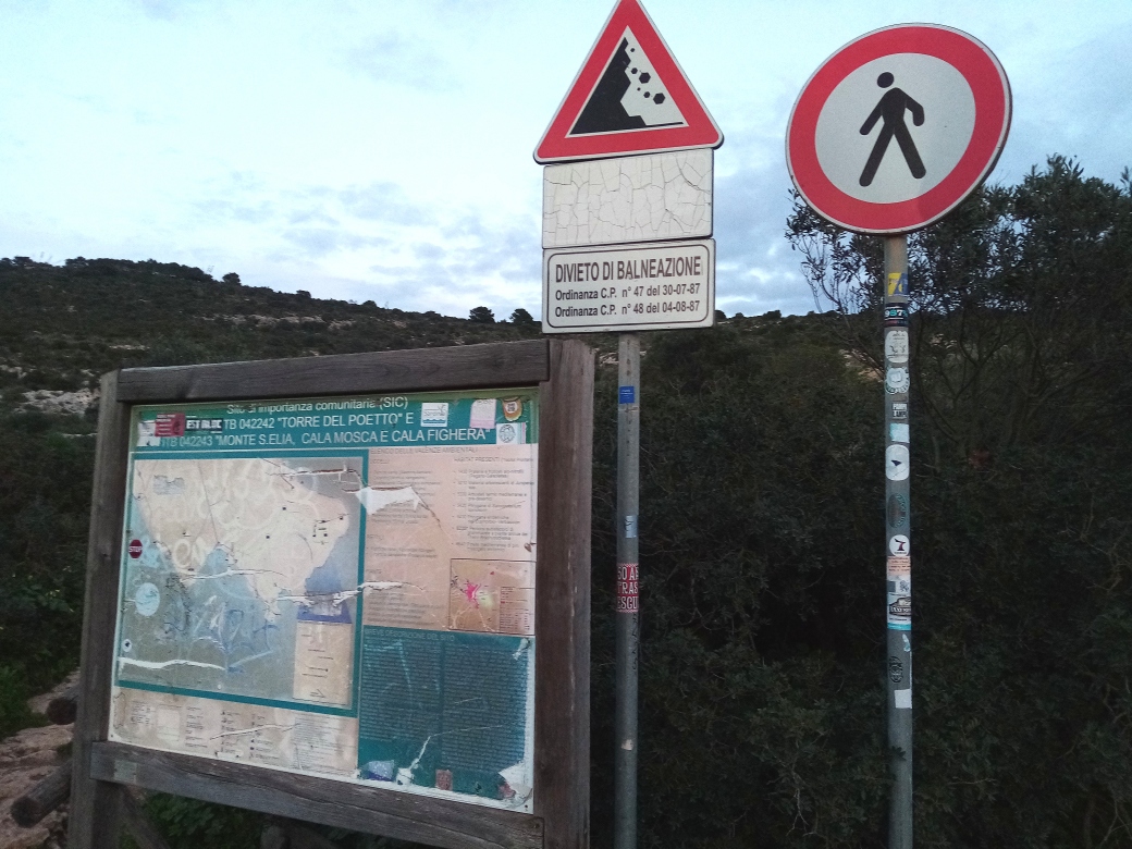 Infatti, già il piano di gestione dei S.I.C. “Torre del Poetto” e “Monte S. Elia, Cala Mosca e Cala Fighera”, approvato con decreto Assessore Difesa Ambiente Regione autonoma Sardegna n. 3 dell’11 febbraio 2011 prevedeva, fra le prescrizioni e indirizzi specifici, il divieto di apertura di nuovi sentieri e il mantenimento di quelli esistenti “solo al fine di una loro percorribilità pedonale”.