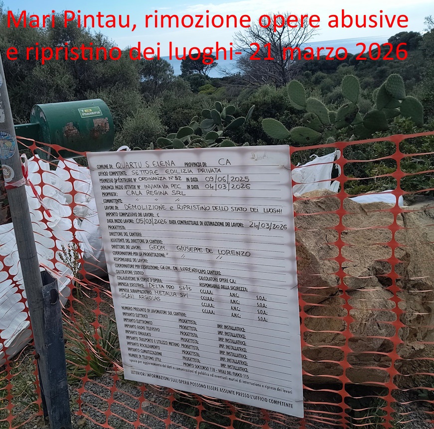 Fino a poche settimane fa, perché i giorni scorsi è stata data finalmente attuazione all’ordinanza 52-2025 del 9 giugno 2025 del Comune di Quartu S’Elena che ha imposto alla società titolare dei terreni la rimozione delle opere dichiarate abusive, con relativo ripristino dei luoghi.