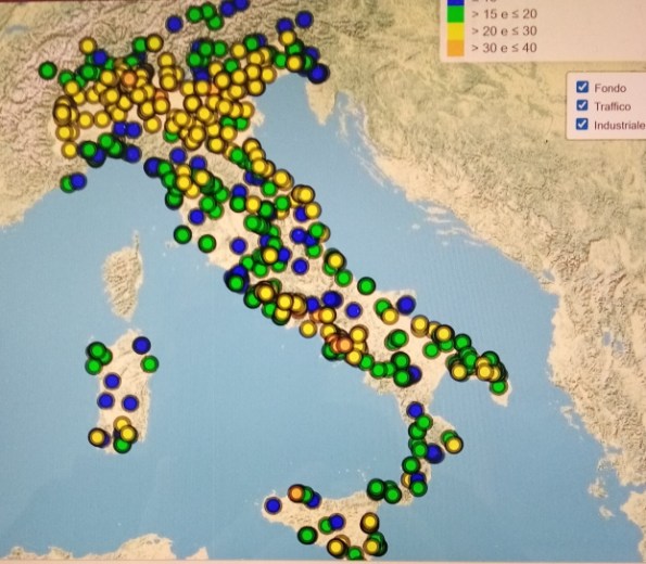 Occorre considerare che i periodi di stagnazione atmosferica invernali (inversione termica a bassa quota, alta pressione livellata, assenza di precipitazioni, vento molto debole o assente) in alcune delle aree del Paese solitamente più critiche, sono stati frequenti e intensi nell’anno appena trascorso favorendo in diversi giorni il superamento della soglia prevista per il valore limite giornaliero di 50 μg/m³.