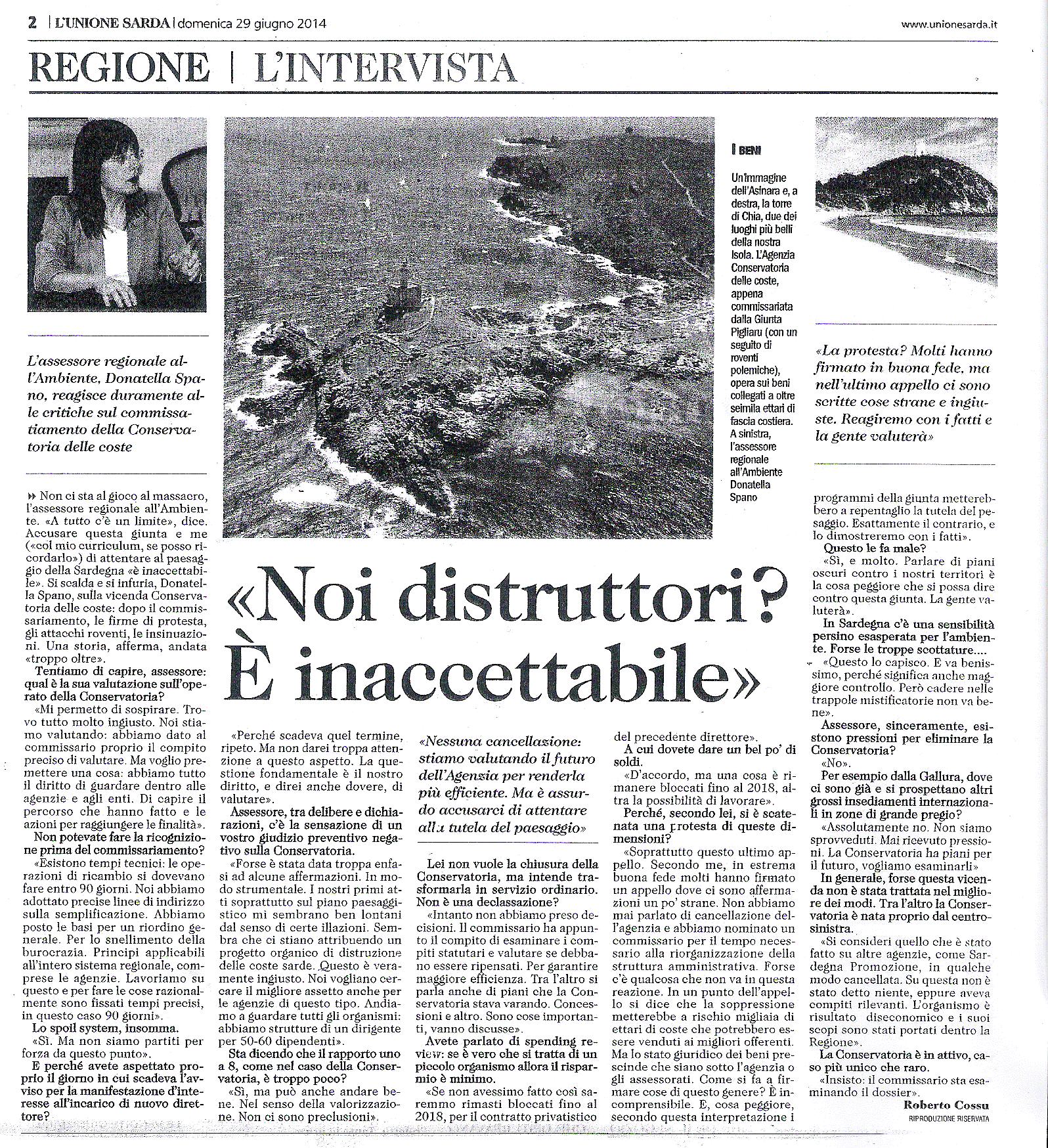 Così dichiarava (L’Unione Sarda, 29 giugno 2014), furente, l’Assessore della difesa dell’ambiente della Regione autonoma della Sardegna Donatella Spano in difesa della decisione di commissariare l’Agenzia della Conservatorìa delle coste della Sardegna e in risposta a chi – e il Gruppo d’Intervento Giuridico onlus è fra questi – temeva e teme per la sorte dei terreni costieri assegnati in gestione all’Agenzia o in titolarità regionale. Leggi tutto…