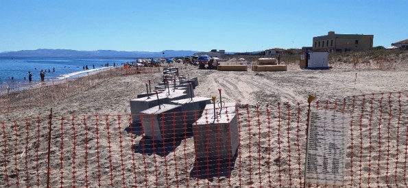 Una bella mattina di questo mese di luglio 2020 sulla spiaggia di Platamona, nella parte Comune di Sorso (SS), sono comparsi recinzioni, picchetti e blocchi di cemento fra lo sconcerto dei bagnanti.