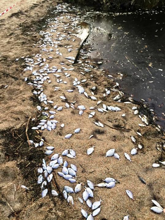 Centinaia di pesci morti lungo la spiaggia della Sciumara, alle foci del Rio Surrau, in Gallura.