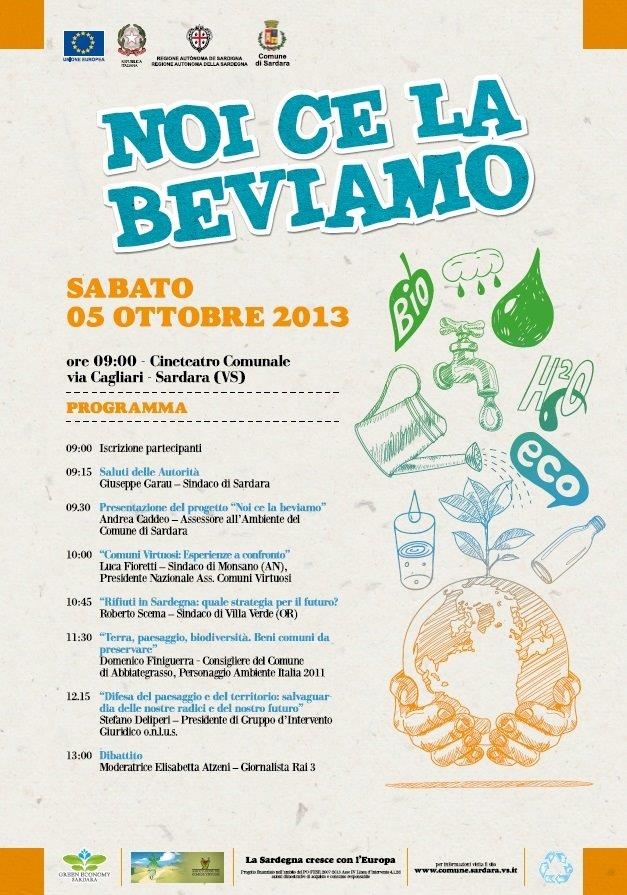 Sabato 5 ottobre, alle ore 9.00, nella sala del Cineteatro Comunale di Sardara si terrà il Convegno dal titolo “Noi ce la beviamo”; un’importante occasione per parlare di azioni virtuose, di consumo consapevole dell’acqua di rete, di gestione del suolo e del territorio, di efficienza e risparmio energetico. Leggi tutto…