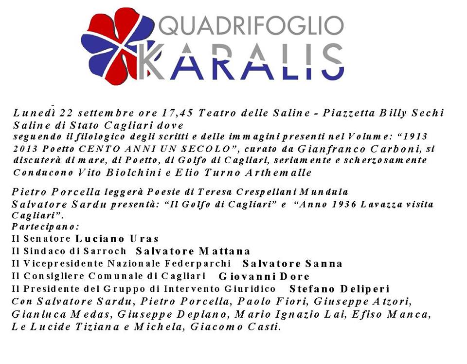 Lunedi 22 settembre 2014, ore 17.45, Teatro delle Saline, Cagliari.