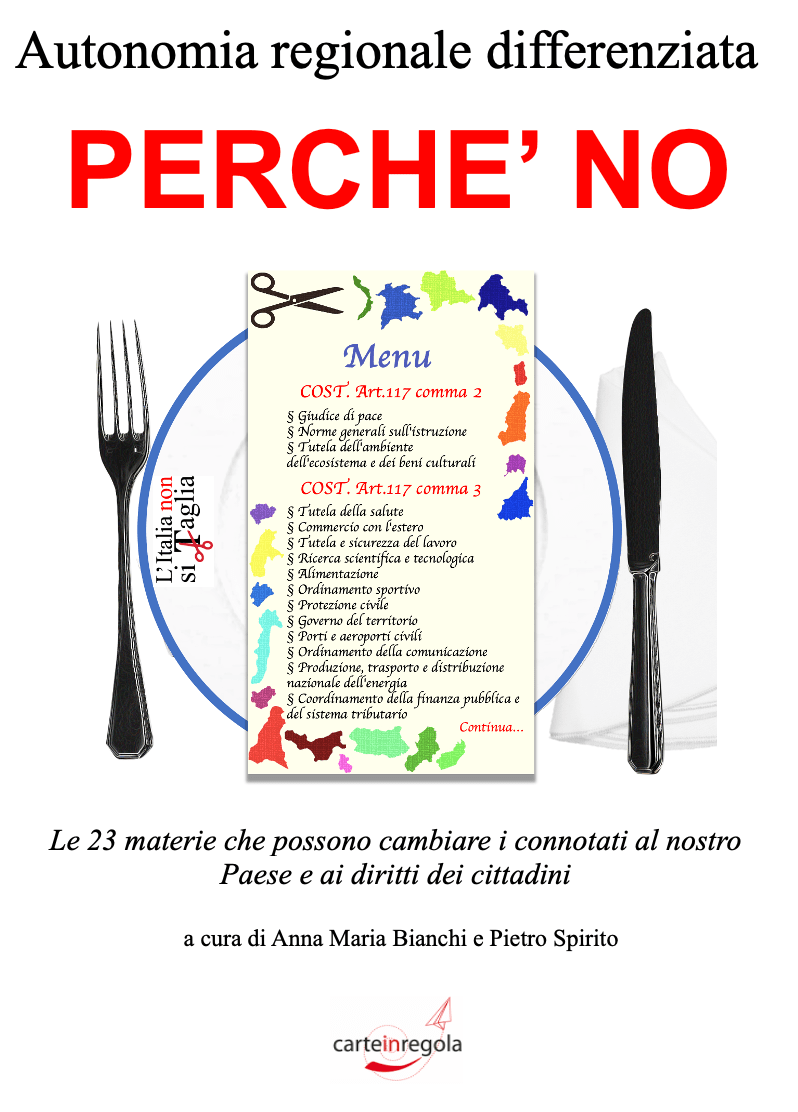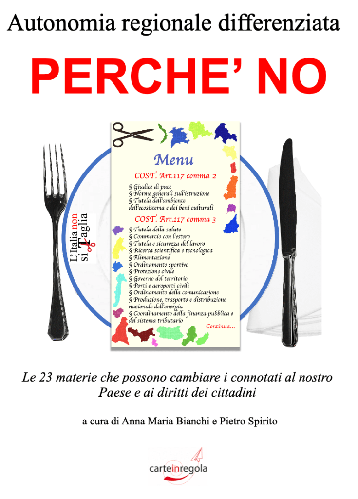 L’associazione Carteinregola ha meritoriamente pubblicato il libro Autonomia regionale differenziata, perchè NO con decine di interventi che spiegano cosa succederà all’Italia, alle Regioni, alle Province autonome – e, soprattutto, ai cittadini – se l’ autonomia differenziata sarà approvata definitivamente.