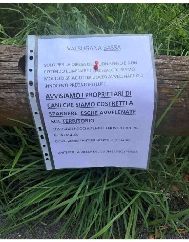 “Avvisiamo tutti i proprietari di cani che siamo costretti a spargere esche avvelenate sul territorio” per far fuori i Lupi che capitassero.