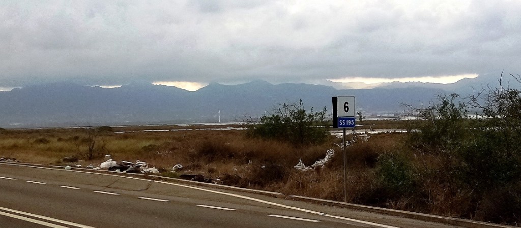 Rifiuti nella piazzola di sosta della strada statale n. 195, lungo la spiaggia della Plaja (Cagliari).