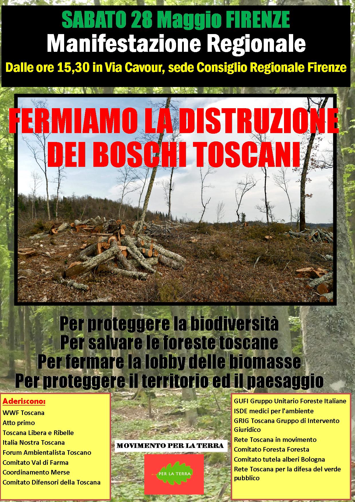 Sabato 28 maggio 2022, ore 15.30, Via Cavour, davanti al Consiglio regionale, a Firenze, manifestazione per la difesa dei boschi della Toscana, massacrati troppo spesso senza criterio e senza legge.